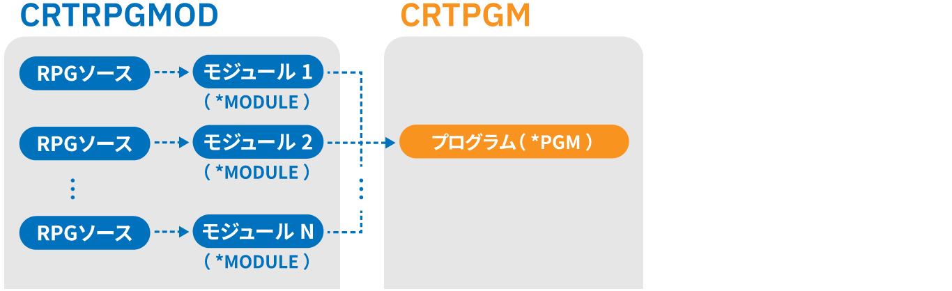 モジュール( *MODULE )オブジェクトはプログラム( *PGM )内部に組み込まれて