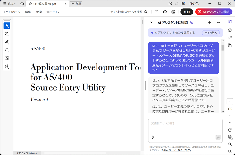 ▼ 英文のSEU解説書の内容を日本語で質問する