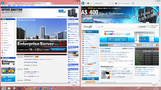 ただし、ブラウザー画面では解像度が高くなりワイド画面一杯に情報を表示することはできるが、