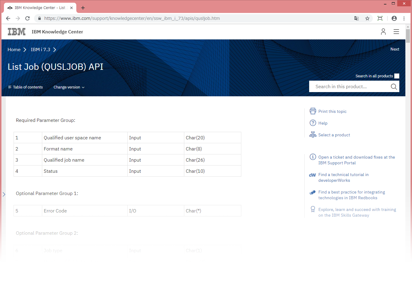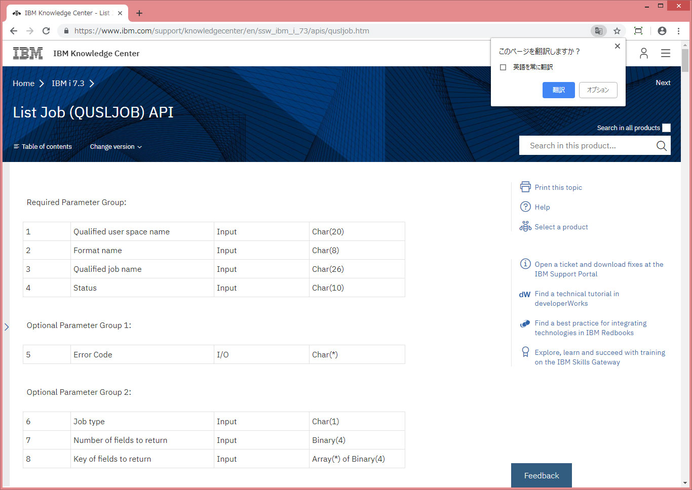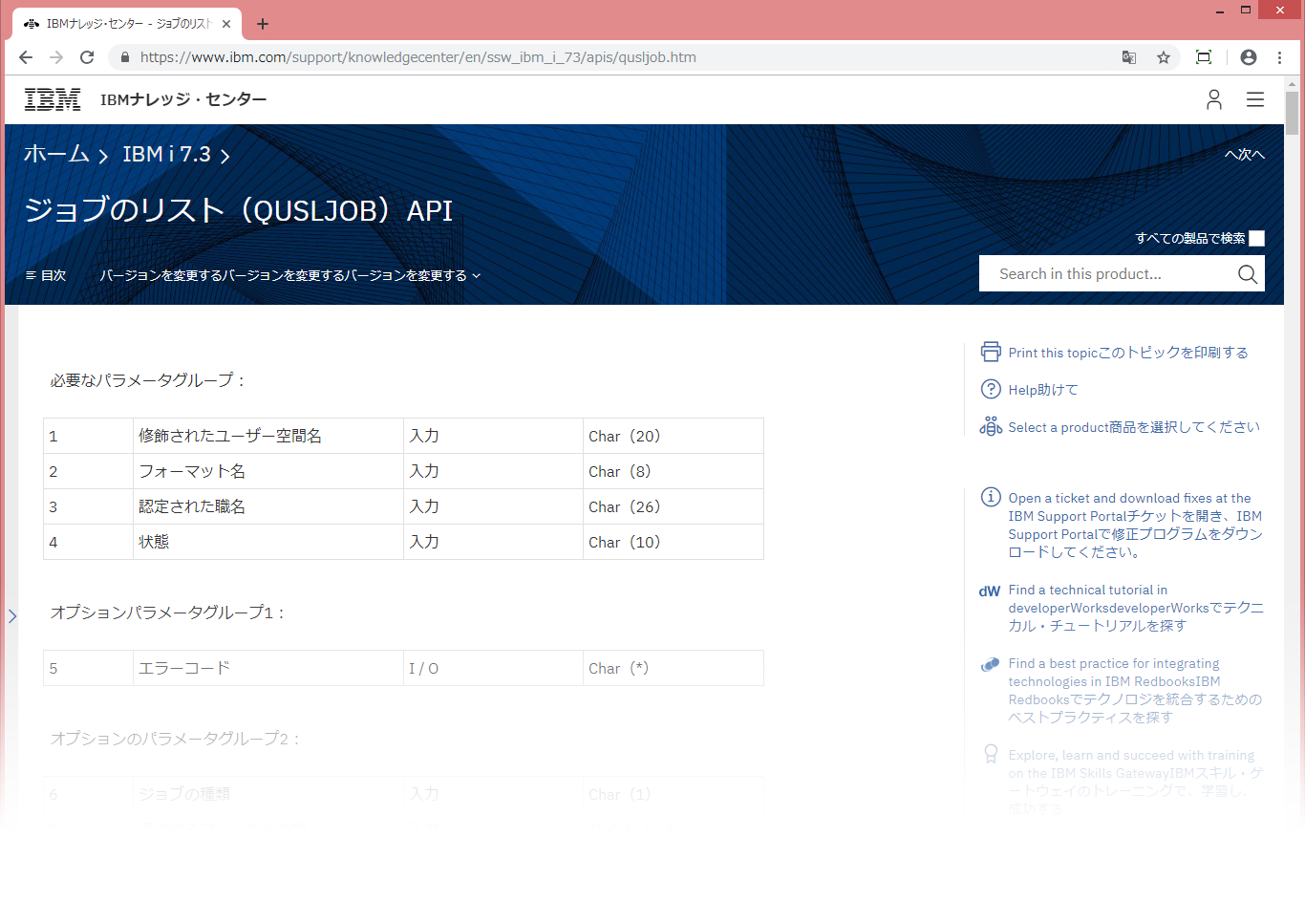 IBM i の API 解説はずいぶん以前から英文のみの表示となっている。