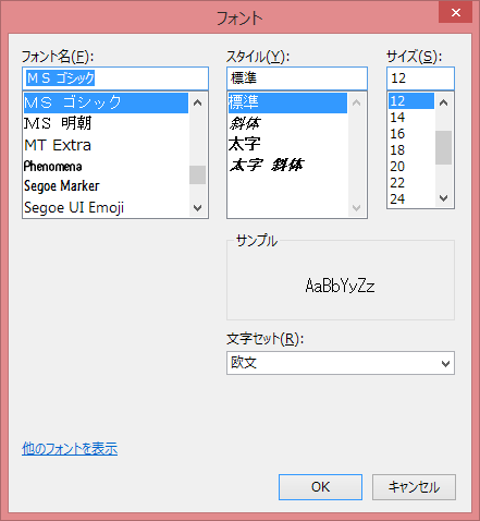 [ 書式 ] – [ フォント ] で次のように「 MS ゴシック 」を指定する。