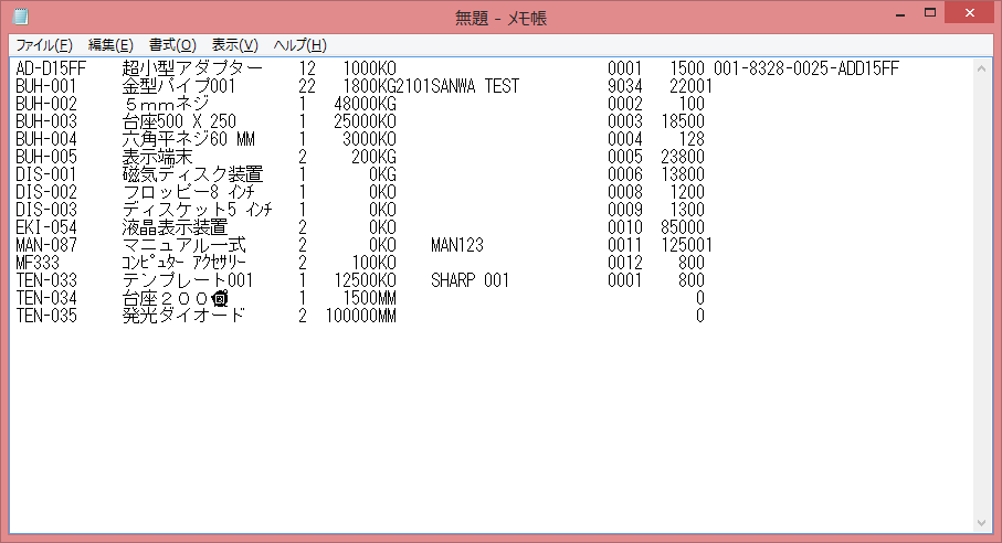 するとメモ帳は固定ピッチフォント MS ゴシックによって次のように正しく表示される。
