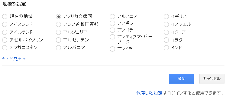 保存してからもう一度検索すると米国サイトの結果がが優先して表示される。