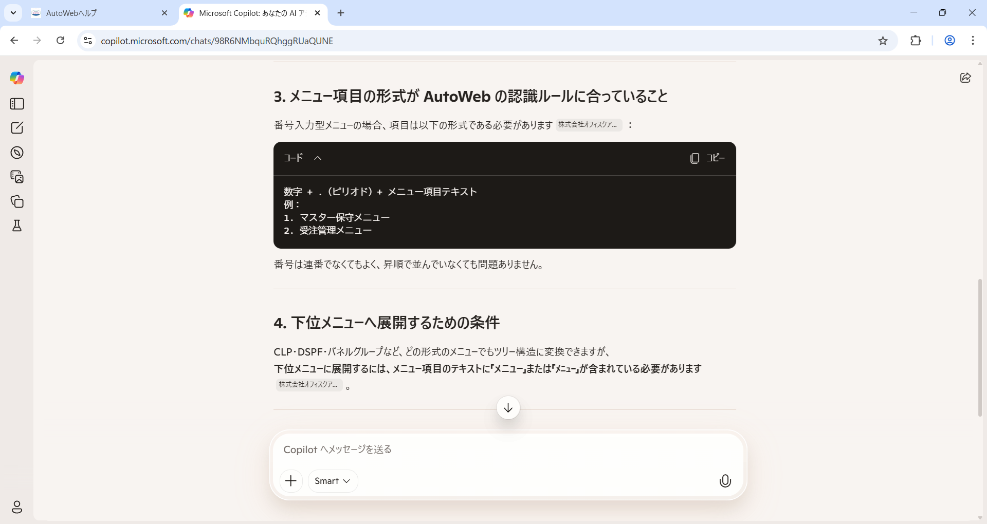 AutoWebの開発者の手引きに新しく追加されたCopilotに
