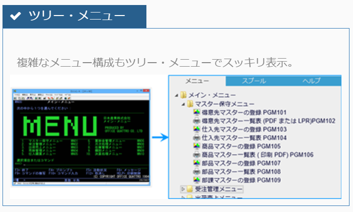 例えば次のように5250メニューはツリー・メニューとして