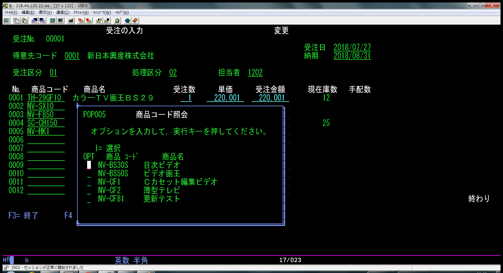 5250エミュレータでのプログラムではRPGやCOBOLでPOPUPを表示するプログラムを