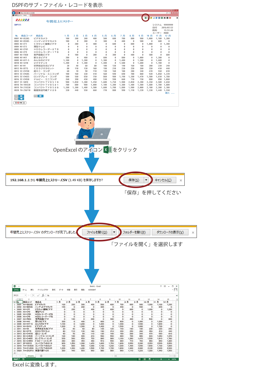 明細レコード ( SFL レコード ) のデータ部分だけを抽出して MS-Excel に出力する機能です。