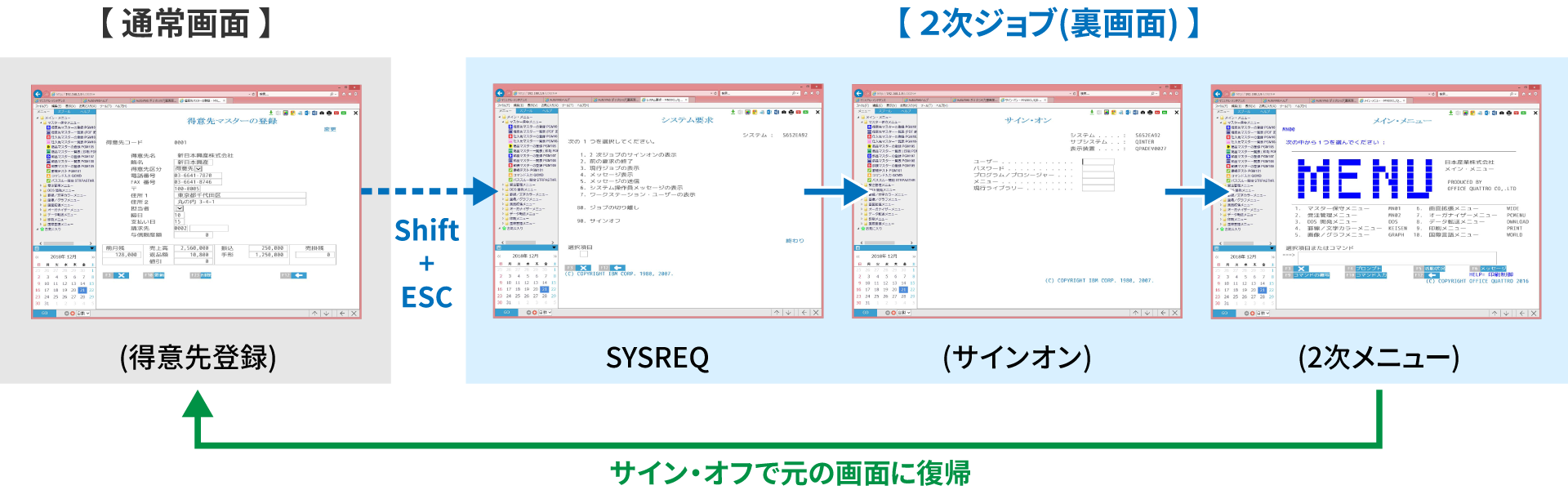 ただちに2次ジョブ(裏画面)に移行することができます。