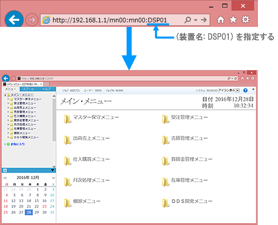 (ドメイン)/(ユーザー):(パスワード):(装置名) の形式でURLに入力すれば