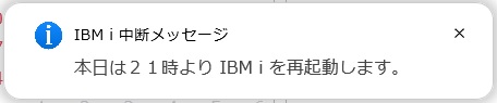 SNDBRKMSG MSG(' 本日は末締めですので 18:00 までに入力してください。 ') TOMSGQ(*ALLWS)